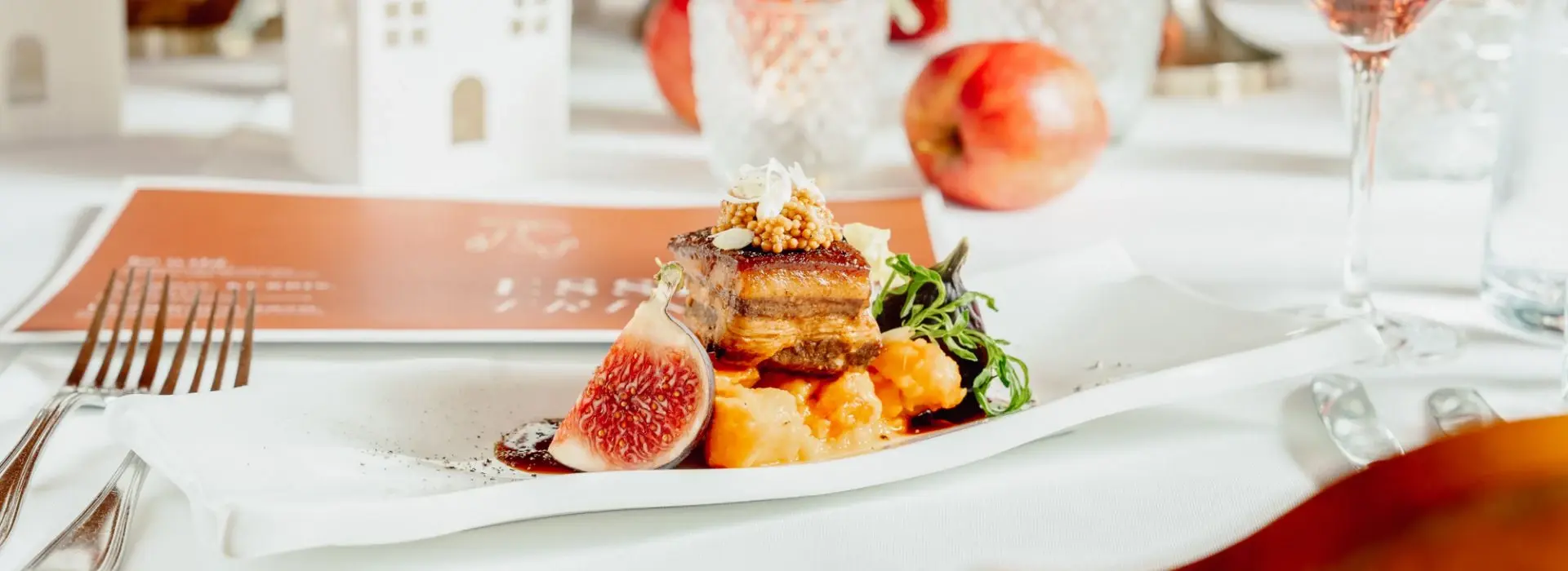 Wir haben den Geschmack des Herbstes auf unserer aktuellen Speisekarte eingefangen. Entdecke leckere Gerichte, heimisches Wild, allerlei vom Kürbis und viele andere Leckereien die Lust auf die gemütliche Jahreszeit machen.